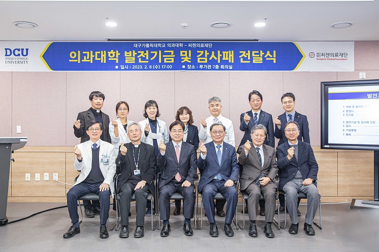 씨젠의료재단은 본교 의과대학에 연구장비 및 연구관련시설 위한 발전기금으로 5억원을 전달했으며 이에 의과대학은 감사의 뜻을 담아 감사패를 전달했다.
