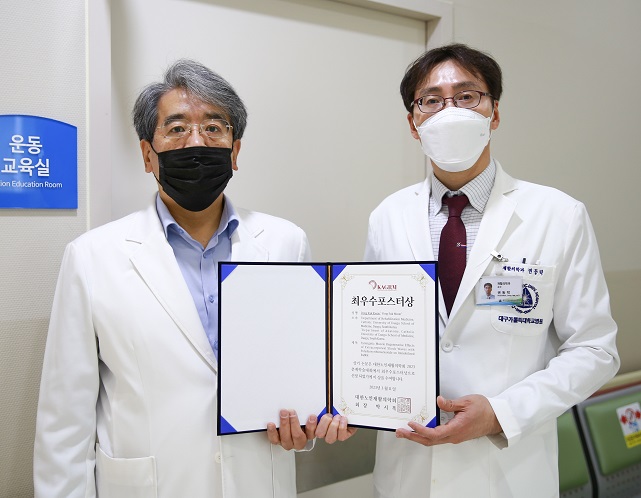 대구가톨릭대학교병원은 재활의학과 권동락 교수팀(재활의학과 권동락 교수, 해부학교실 문용석 교수)이 지난 3월 11일(토) 서울에서 개최된 ‘2023년 대한노인재활의학회 춘계학술대회’에서 ‘토끼 장단지 근육위축 모델에서 폴리데옥시리보뉴클리오티드(Polydeoxyribonucleotide / PDRN)와 체외충격파치료의 병합에 따른 근육재생 상승 효과’라는 논문을 발표해 ‘최우수포스터상’을 수상했다고 16일(목) 전했다.
