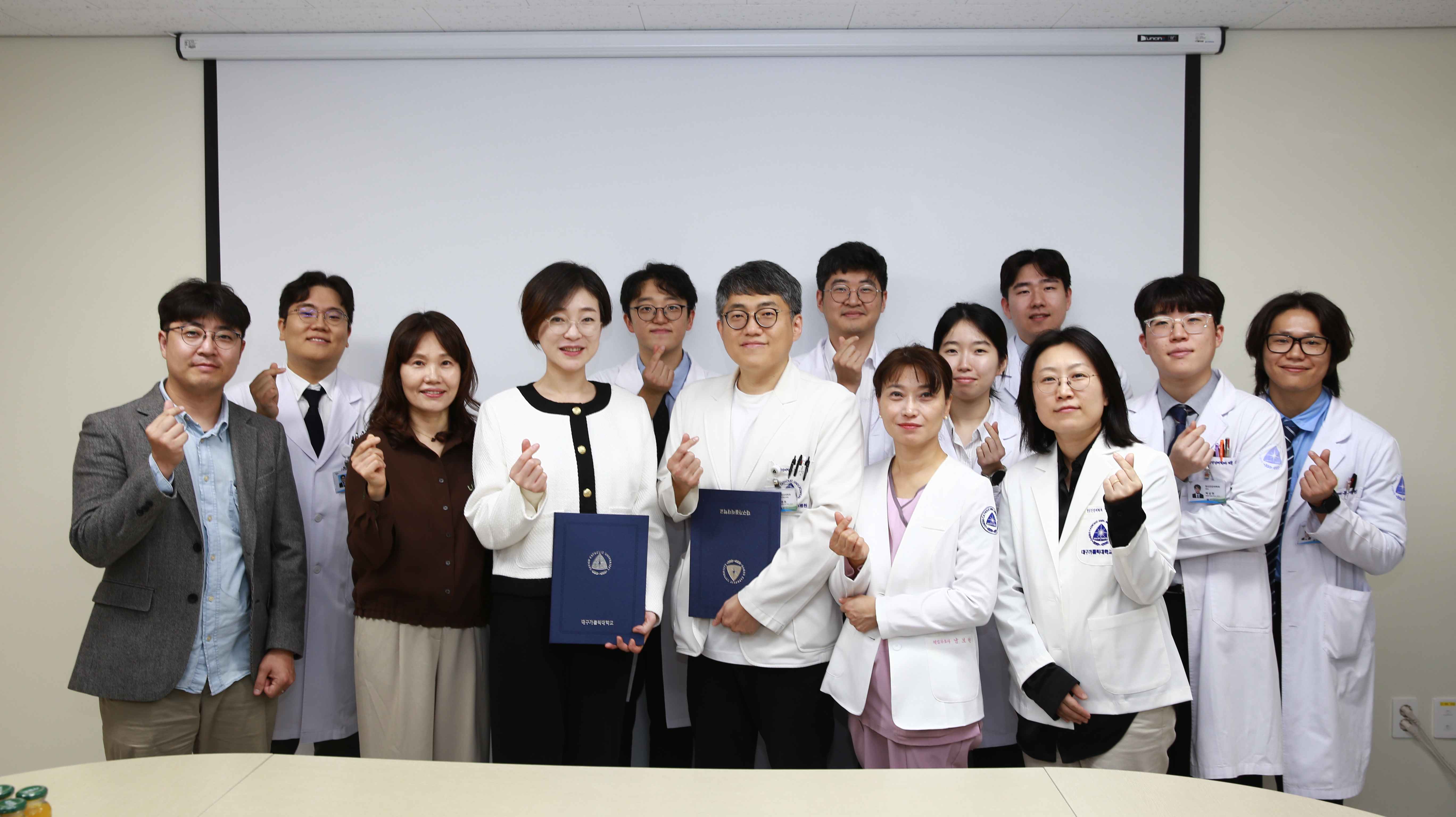 지난 10월 16일(목), 본원 정신건강의학과는 대구가톨릭대학교 예술치료학과와 함께 병동 입원환자의 정신건강 증진을 위한 음악치료 프로그램 운영 및 상호 협력 업무협약(MOU)를 체결했다. 이날 협약식에는 정신건강의학과장 김준원 교수, 김수아 대구가톨릭대 예술치료학과장(DCU 예술치료센터장)을 비롯해 주요 관계자들이 참석했다. 본 협약은 현장 중심의 예술치료 전문 인력 양성, 정신건강 증진을 위한 공동 연구 및 프로그램 개발, 지역사회 정신건강 인식 개선 및 사회 공헌 확대를 목적으로 마련되었으며 학문·임상·지역사회를 잇는 통합적 협력 체계를 공식화했다. 김준원 교수는 "이번 협업으로 이번 협업으로 입원 및 외래 환자들에게 더욱 통합적인 치료를 제공할 수 있게 되었다"며 "학생들의 참여는 의료진에게도 새로운 치료 접근법을 경험하는 의미 있는 계기가 될 것"이라고 전했다.