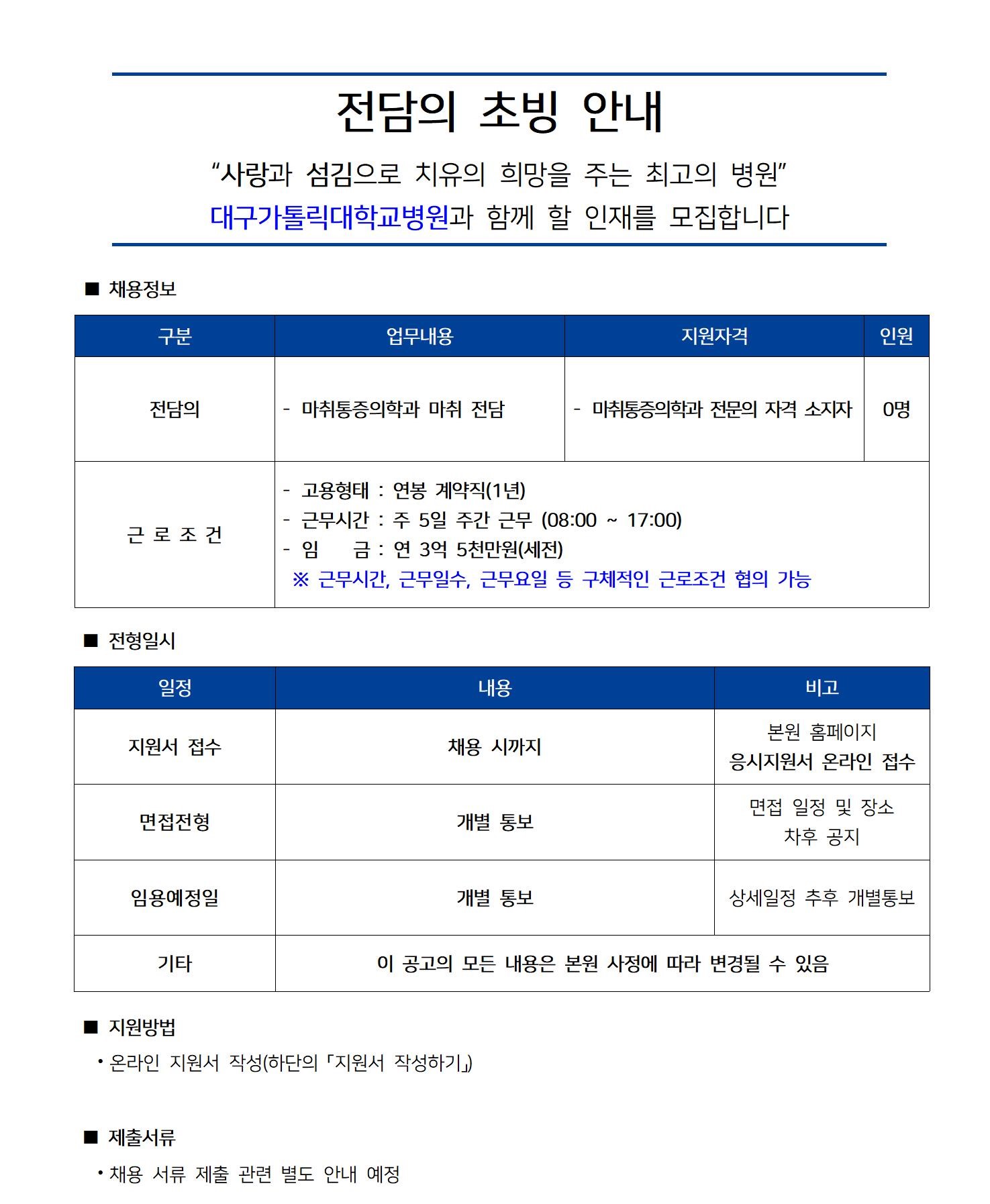 | 마취통증의학과 전담의 초빙 공고 | ||