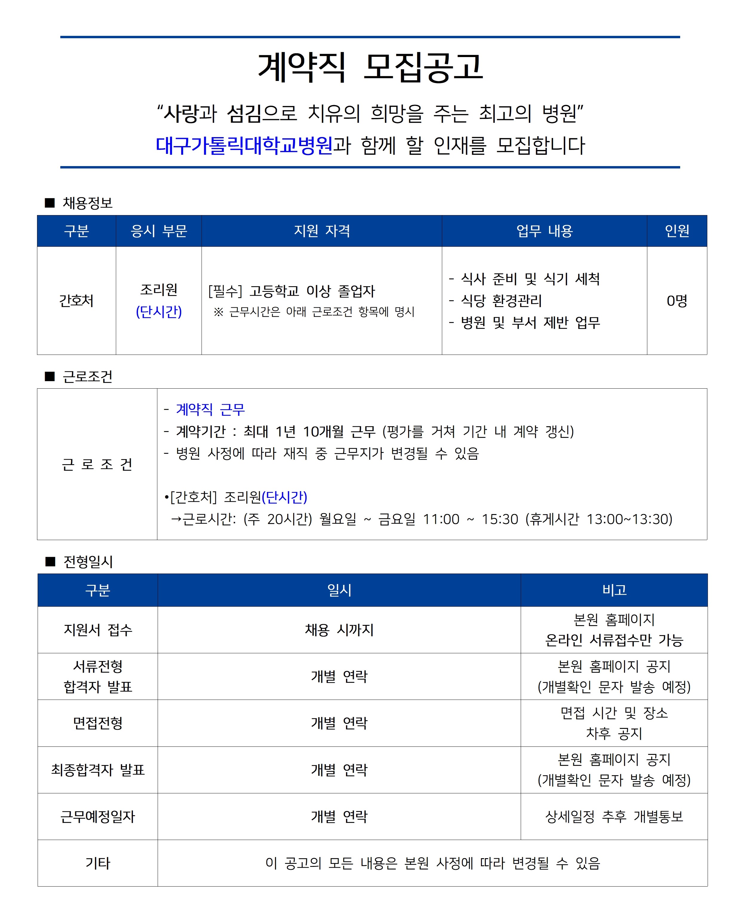 | [간호처] 조리원(단시간) 공개채용 | ||