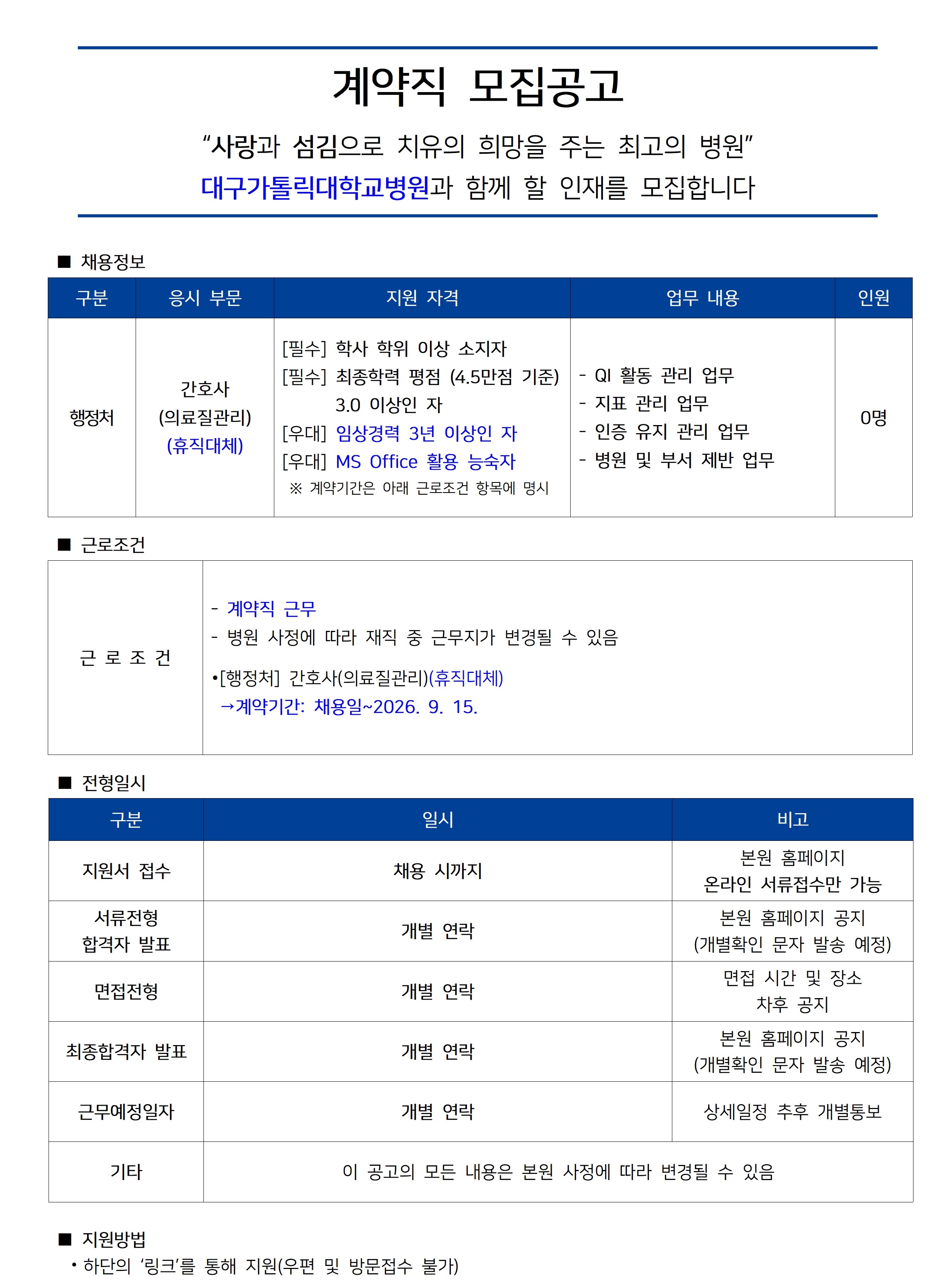 | [행정처] 간호사(의료질관리)(휴직대체) 공개채용 | ||
