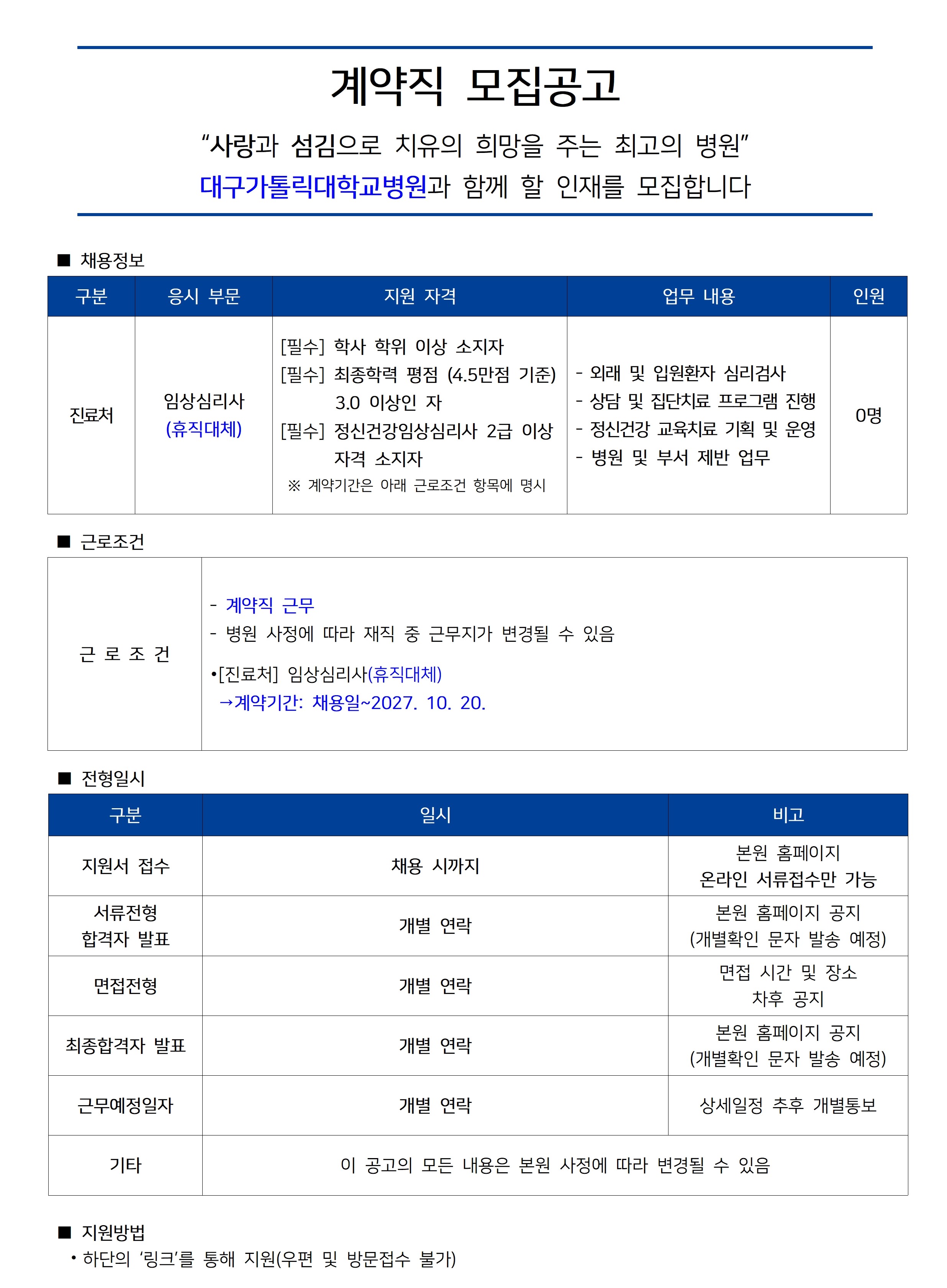 | [진료처] 임상심리사(휴직대체) 공개채용 | ||