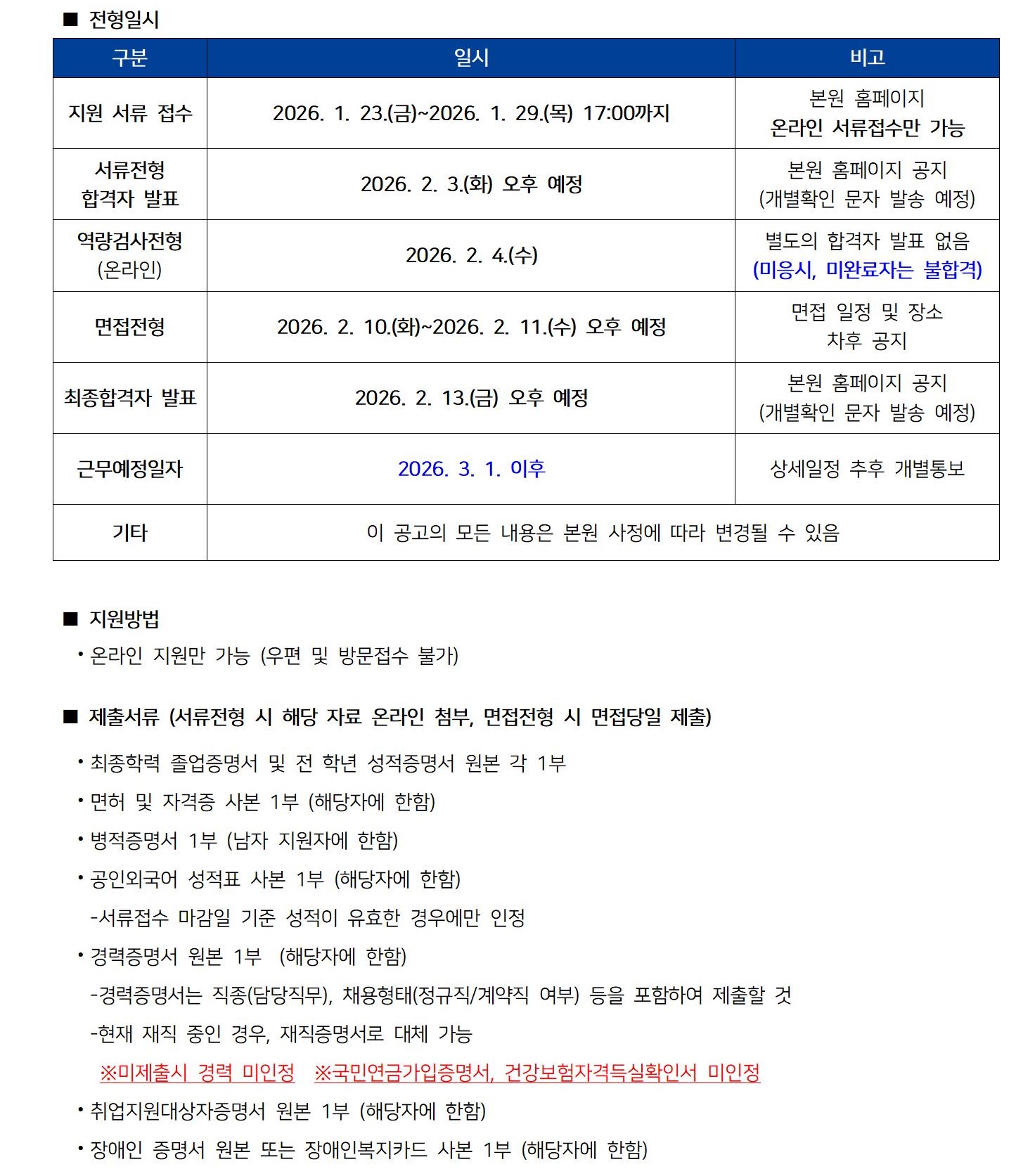 | 2026년 2월 정규직 전환 계약직 공개채용 | ||