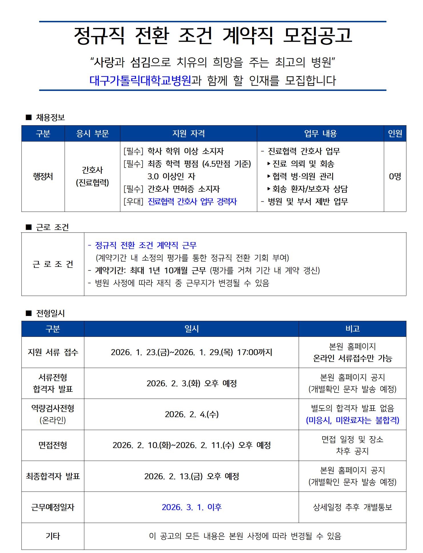 | [행정처] 간호사(진료협력) 공개채용 | ||