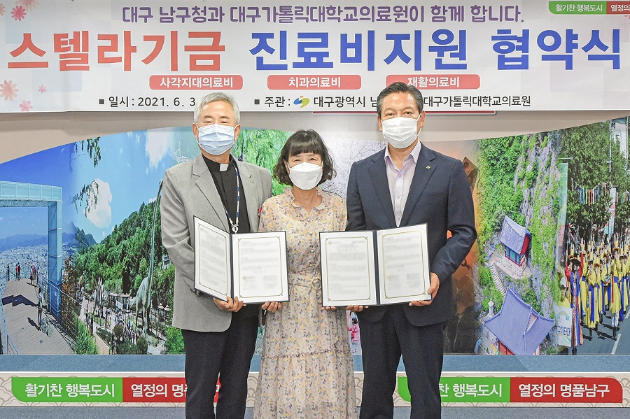 대구가톨릭대학교의료원은 지난 6월 3일(목) 대구광역시 남구청과 지역사회 의료소외계층을 위한 ‘스텔라기금 진료비 지원사업’ 협약을 체결했다.