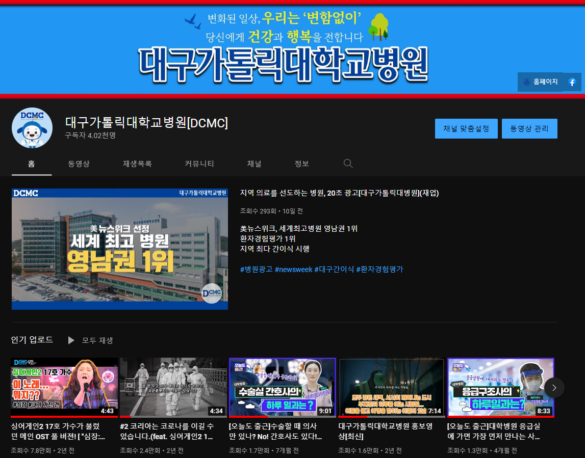| 대구가톨릭대학교병원 유튜브 구독자 4천명 돌파 | ||