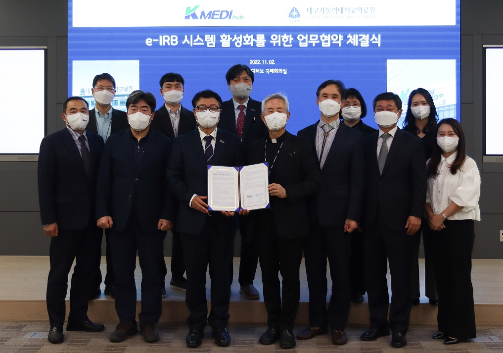 대구가톨릭대학교의료원(이하 ‘의료원’)과 케이메디허브(대구경북첨단의료산업진흥재단)는 지난 11월 2일(수) ‘e-IRB 시스템 활성화를 위한 업무협약’을 체결했다.
